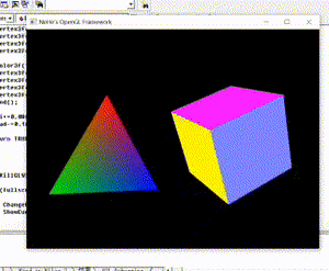 - 这一节课终于开始画立体的图形了 我创建了一个金字塔和立方体 除了颜色之外还加入了旋转 这是有意思的开始
